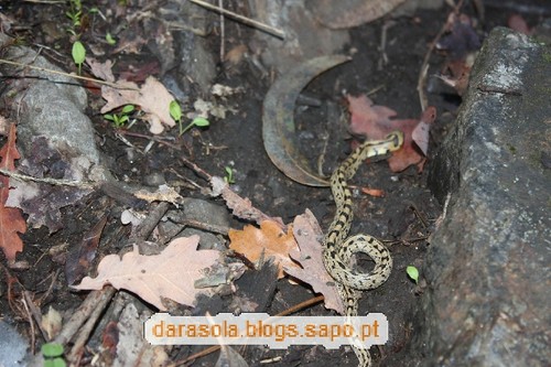 Uma pequena cobra. Infelizmente encontrava-se morta. Alguém sabe qual é a sua espécie?
