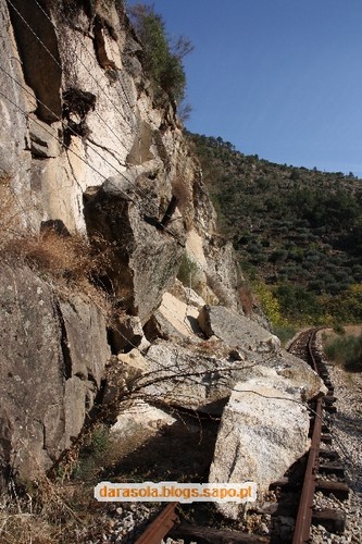 Alcançámos então o local onde ficámos impressionados perante o perigo que representavam os desmoronamentos para a segurança desta linha.