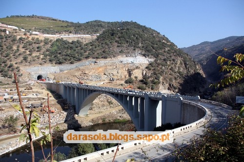 O vulto imponente da ponte não deixa de causar alguma estranheza no meio de um cenário de natureza quase intocada, como é o vale do Tua.