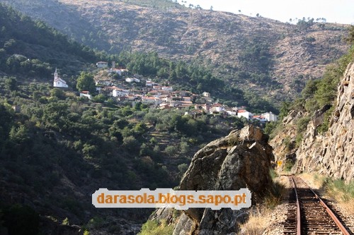 A linha com vista para a aldeia de Amieiro na outra margem, onde se destaca a sua igreja.