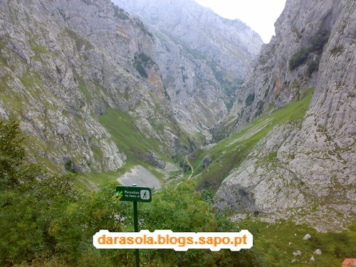 Do alto do bairro El Castillo, pode ver-se o vale por onde era o antigo acesso à aldeia até Poncebos.
