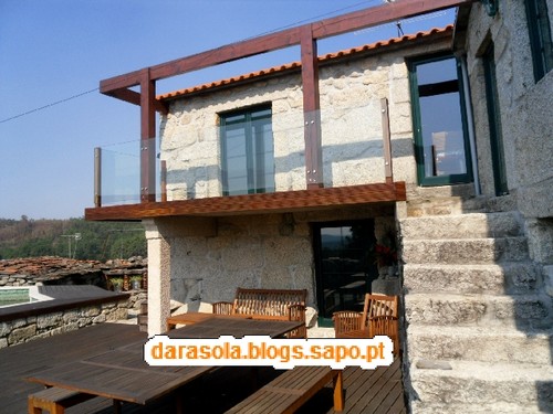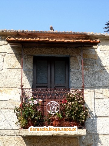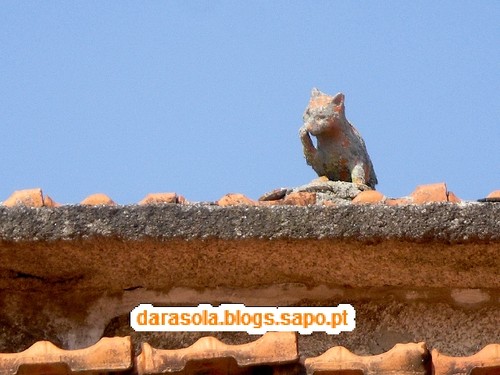 Pormenor de uma varanda, e por cima, no telhado, um gato?