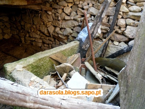 Lagar para a vindima no meio dos escombros do telhado de uma casa. Depois de Hortas Velhas, a descida pouco ou nada trouxe de novo.
