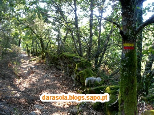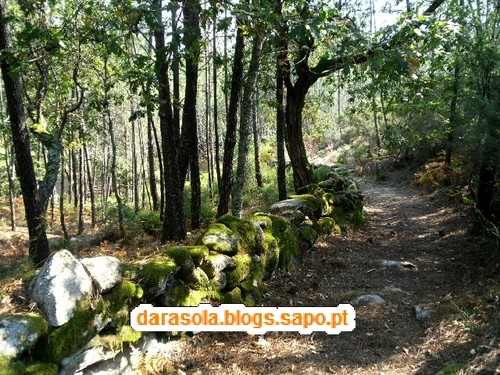Gostei particularmente desta zona do percurso. O trilho junto ao muro com musgo e os carvalhos ao lado, agradou-me mesmo.