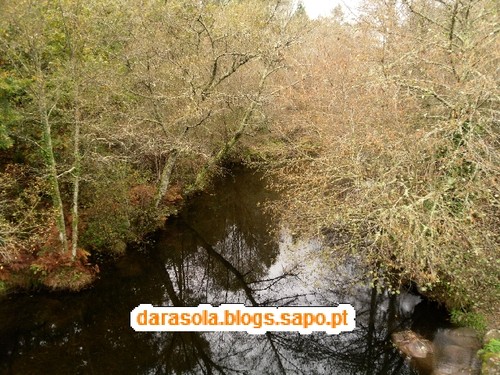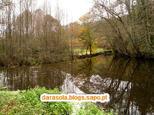O caminho continuava por ali, do outro lado do rio, mas não havia poldras. Soubemos mais tarde quando passámos no porto de turismo de Vouzela, que as comportas eram abertas quando chegava o inverno para que as poldras não ficassem cobertas pelas águas. Infelizmente ainda não tinham mandado lá ninguém para tratar disso. Tivemos de arranjar uma alternativa que passou por regressar até à estrada e seguir até encontrar novamente o trilho mais adiante.