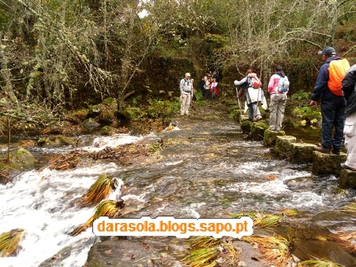 A travessia das poldras. Não houve nenhuma queda a registar, mas não faltava quem pedisse alguma animação. O local é de grande beleza e a travessia torna-se um pequeno divertimento, no entanto é bastante demorada.
