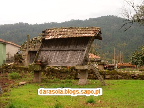 Um espigueiro cheio de espigas de milho. Uma visão cada vez mais rara.