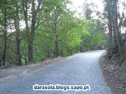 O percurso sobre pela avenida de acesso ao mosteiro em direção ao cruzeiro.