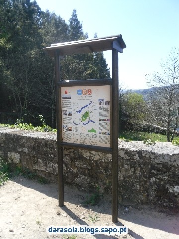 Frente ao largo do mosteiro encontramos o coreto e logo ao lado, o painel informativo do percurso.