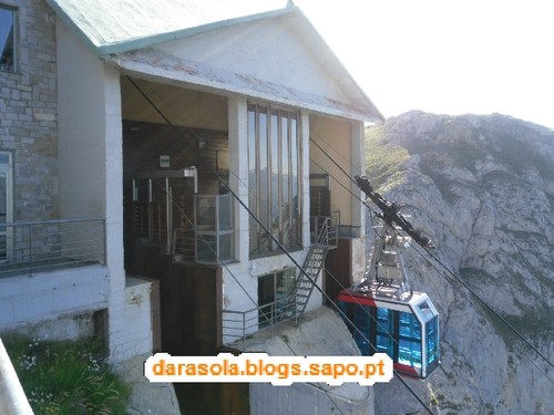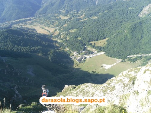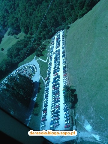 Foto tirada do interior do teleférico com a nossa sombra lá beeeem em baixo! Ai meu Deus, se isto cai não sobra nada....