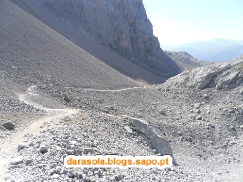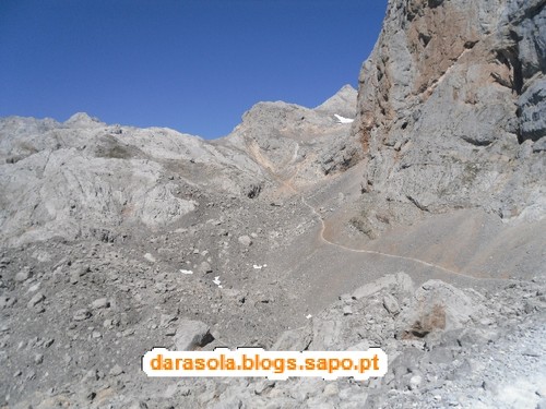 Já chegámos? Não! Ainda falta isto tudo! A branco, podem ver-se pedaços de neve gelada que ainda por ali estavam em agosto!!!