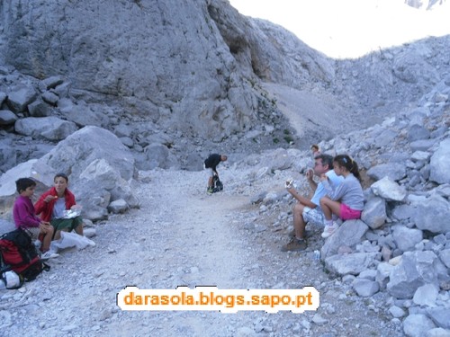 Uma família completa a meio da subida, numa paragem para reforço alimentar.