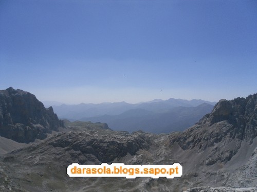 Mais um relato de uma das caminhadas realizadas nos Picos da Europa. Depois de descobrir a pequena vila de Potes, subimos até Fuente Dé, com vista a andar no teleférico local ("El Cable"). Fiquei deslumbrado com o local, não só pela ascensão que o teleférico permite, mas especialmente pela dimensão da paisagem. O prado que se encontra no sopé da montanha é fantástico e de uma dimensão que nunca tinha visto. Sentimo-nos mesmo pequeninos. Depois da subida no teleférico (gluppp, é hoje que morro...) e das fotos da praxe no topo do monte, acabamos por esticar o passeio um pouco mais e quando dei por isso, já estávamos a percorrer o PR - PNPE 23 - Horcados Rojos, que nos levaria até à Cabana Verónica, um pequeno abrigo de montanha. O trilho é exigente do ponto de vista do piso, pois é praticamente só cascalho (e eu sem as minhas botas de caminhada), mas bastante acessível do ponto de vista físico, tanto é que encontrámos várias crianças a percorrê-lo. Felizmente tivemos a sorte de ter um dia fantástico, mas depois do calor sufocante de Potes, não esperava o "fresquinho" que se fazia sentir lá no alto. Com as idas e voltas, acabamos por percorrer cerca de 14km, assim como quem não quer a coisa.