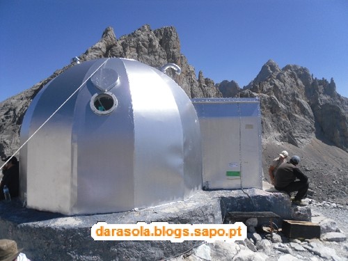 A aproximação à cabana Verónica, que mais parece um módulo lunar.
