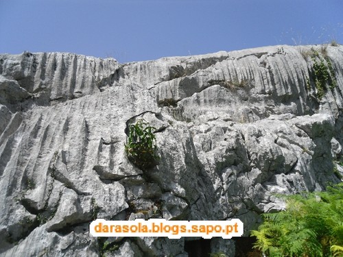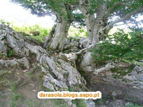 O bosque por onde passámos é fabuloso. Na foto, nem dá para perceber onde acaba a rocha e onde começa o tronco da árvore.