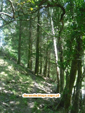 Chegamos então a uma das zonas mais bonitas do percurso, um bosque frondoso de árvores variadas, onde se destacavam castanheiros enormes.