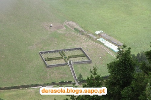 Encontramos uma zona em piso de cimento, junto ao Pico da Cruz, o ponto mais elevado da cumeada em redor da caldeira da lagoa das sete cidades.