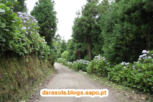 As hortênsias a ladearem o caminho davam um encanto tipicamente açoreano.