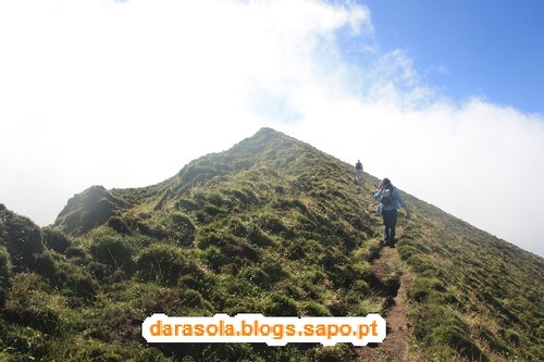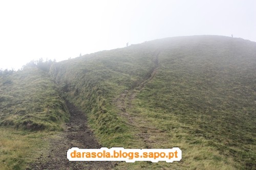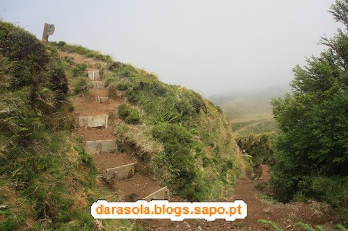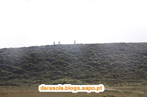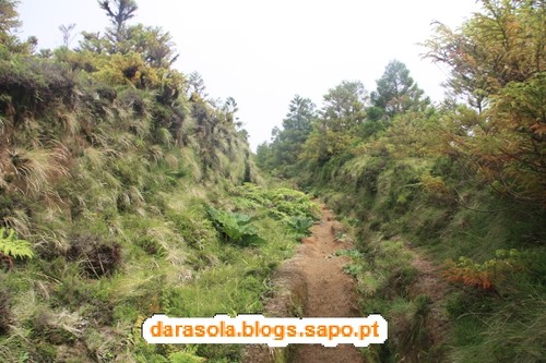 A vegetação é mais densa e abriga-nos da ventania que se fazia sentir no topo.