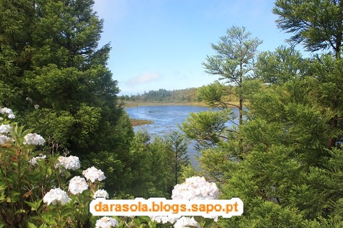 Contornando a lagoa, as hortênsias surgem ladeando os caminhos.