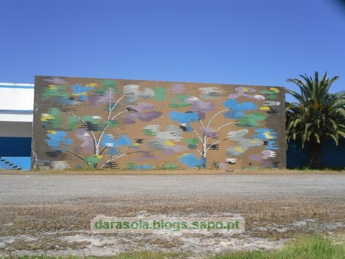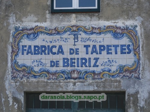 Um curioso azulejo com o aqueduto em pano de fundo.
