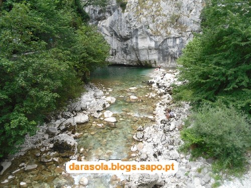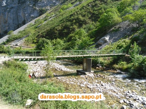 Lá ao fundo, via-se perfeitamente uma corrente forte que surgia do nada e se juntava ao rio Cares. Será provavelmente alguma corrente subterrânea que ali surge à superfície.